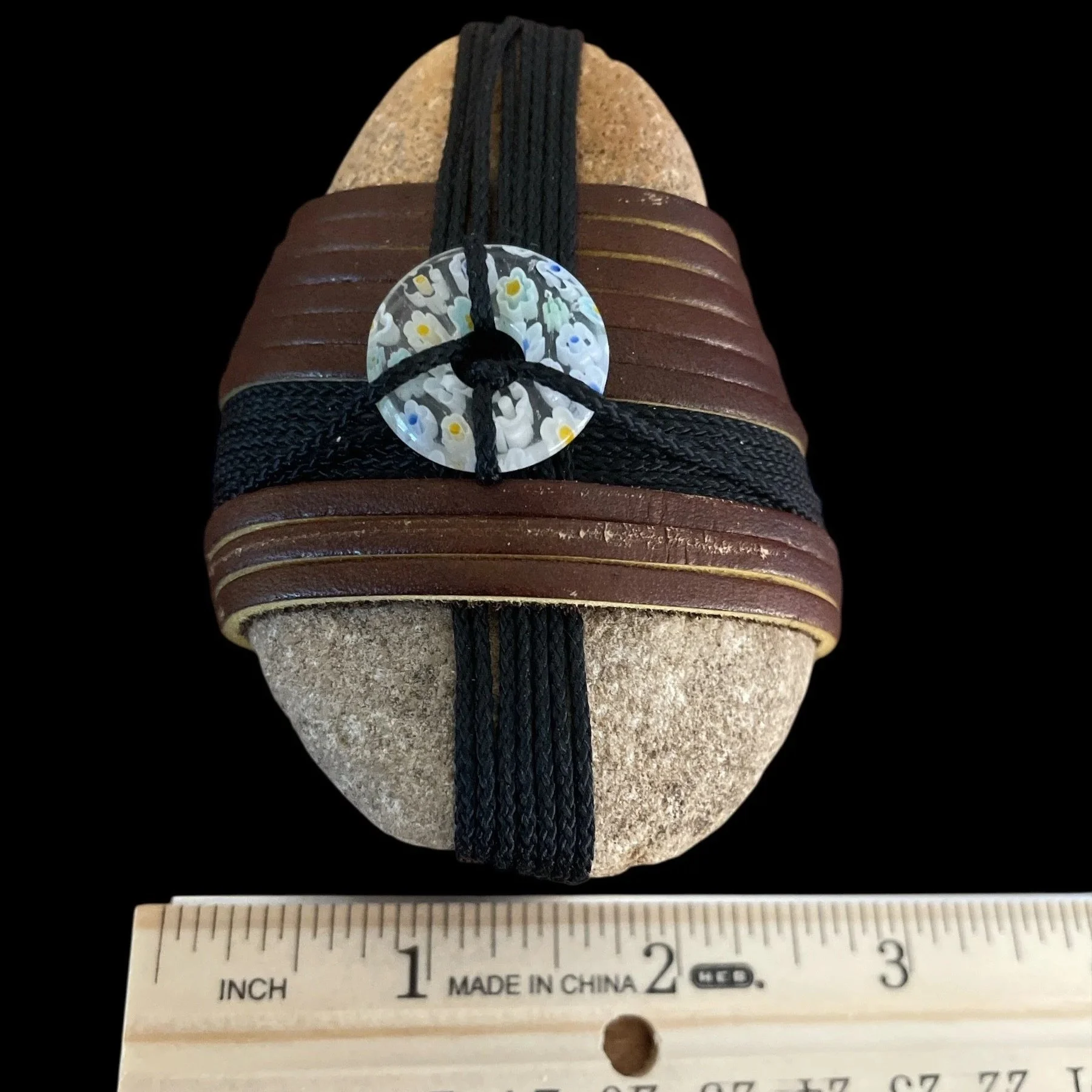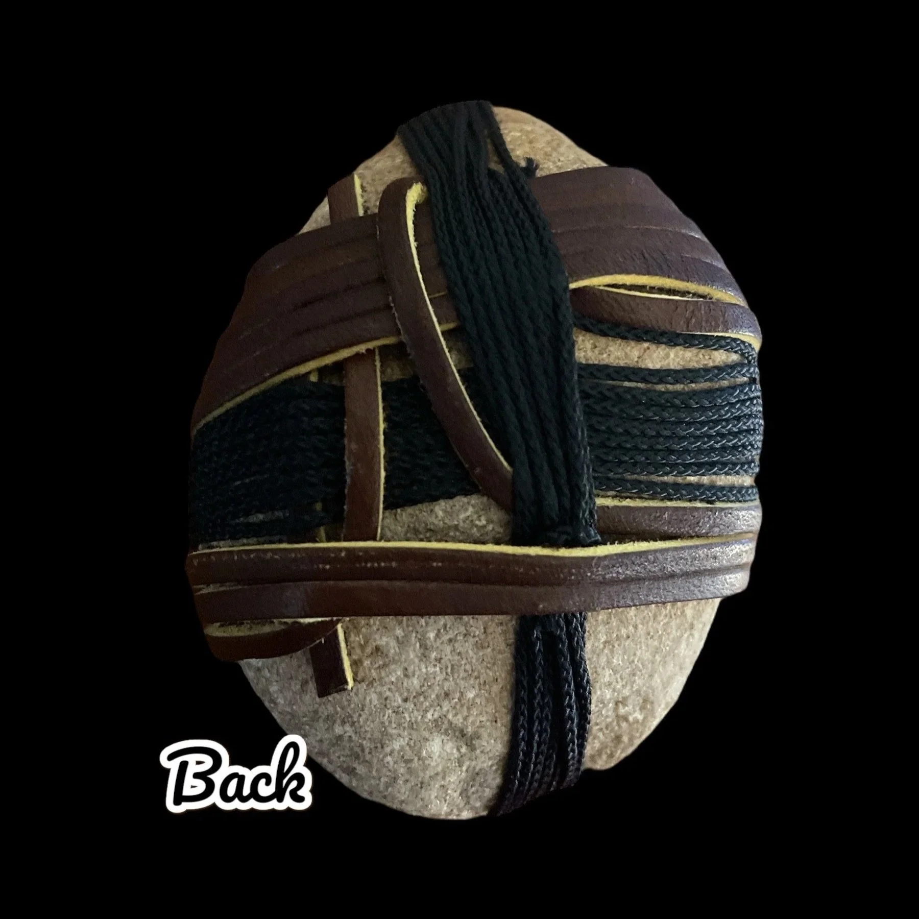 Elevate your space with these unique handcrafted leather-wrapped stones. Each piece is a blend of natural beauty and artisanal craftsmanship, perfect for adding a touch of rustic elegance to your home or office. Each stone is selected for its natural beauty and unique shape and then meticulously wrapped by hand using ancient wrapping techniques.