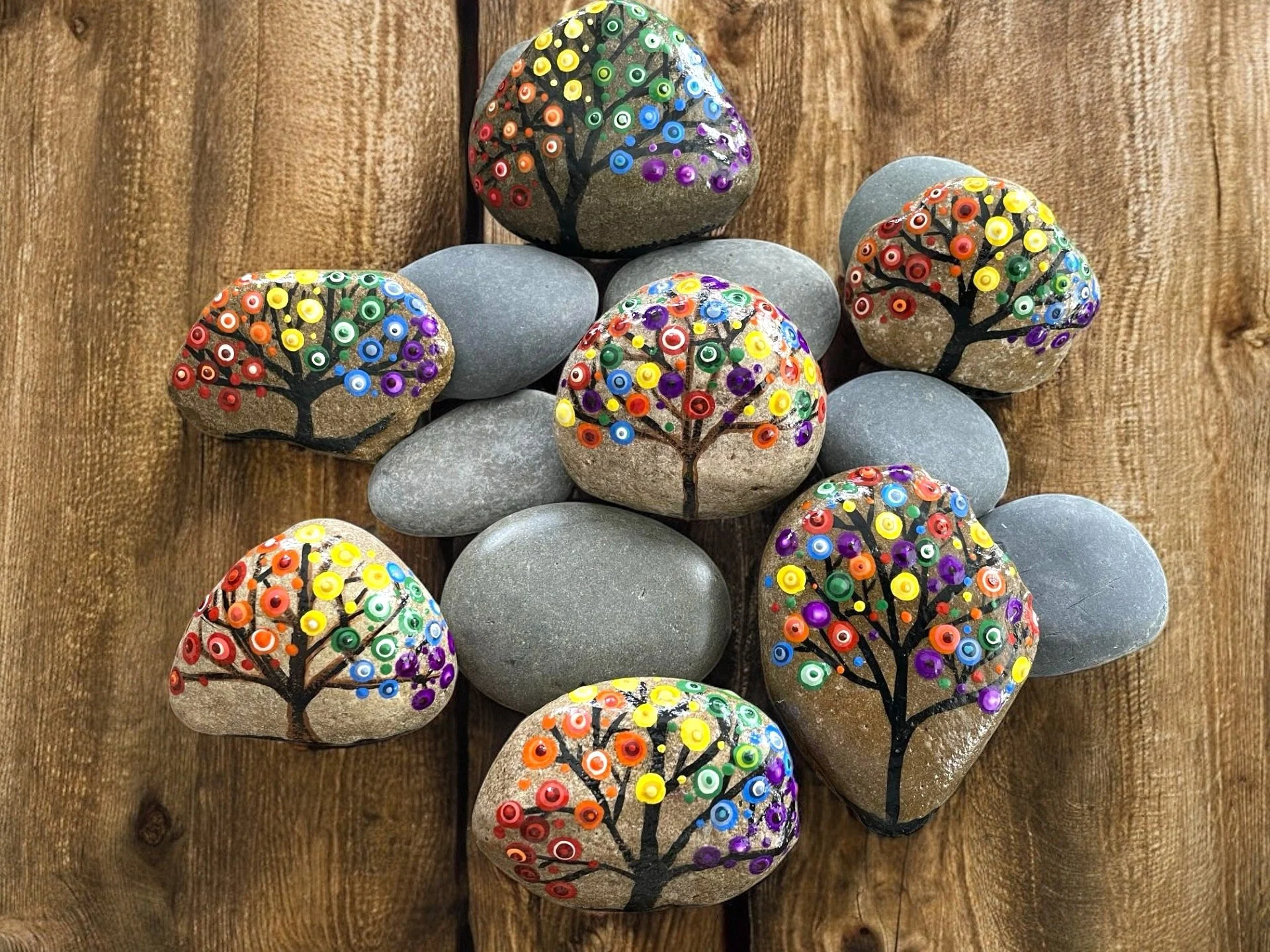 Immerse yourself in the profound beauty and symbolism of nature with a handcrafted multicolor dot art tree. Each piece is meticulously hand-painted with intricate dot patterns, embodying the rich symbolism of growth, strength, and renewal.